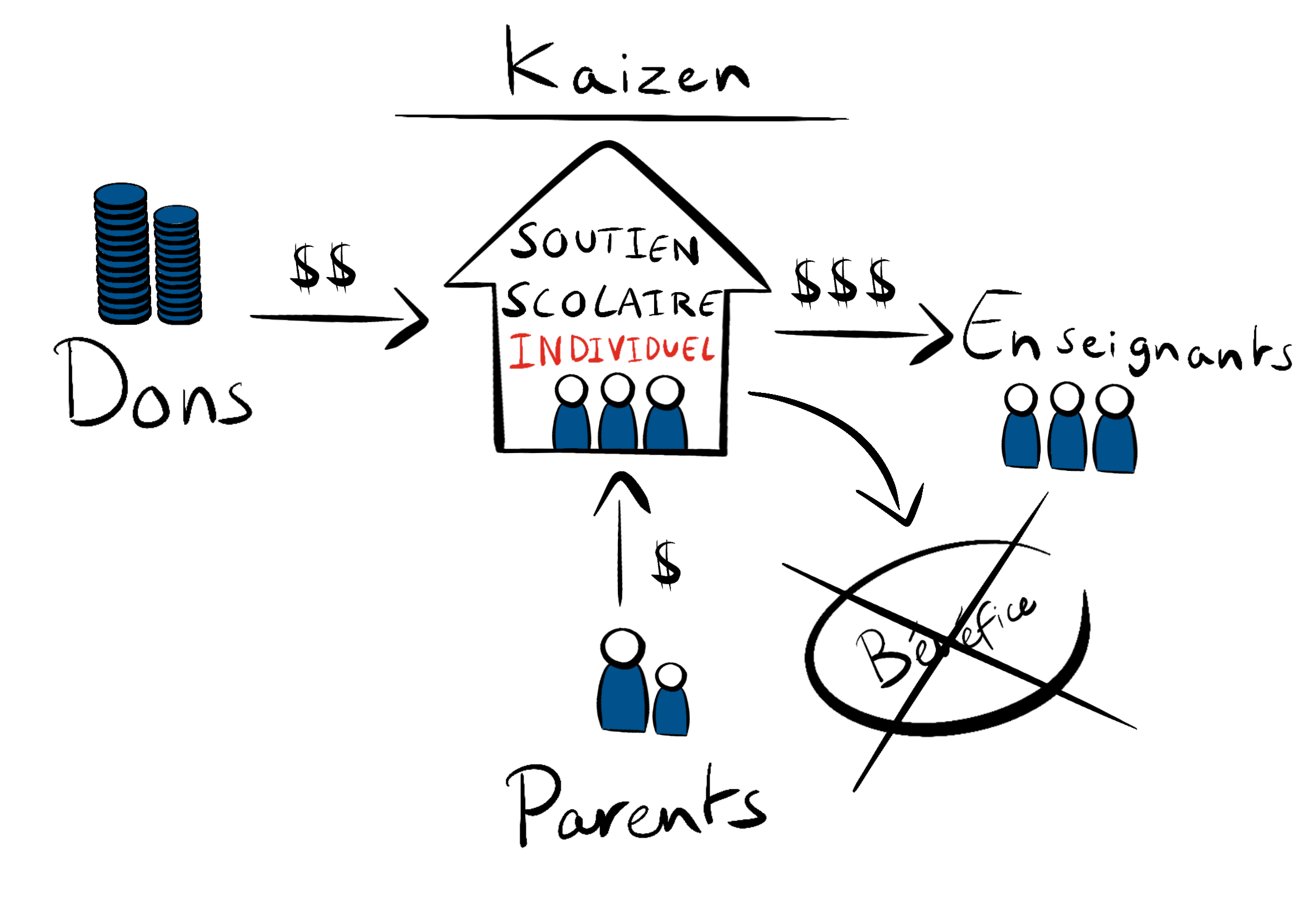 Kaizen Classroom est une organisation à but non lucratif, sociale et solidaire. Sa finalité est de soutenir l’apprentissage des élèves qui éprouvent des difficultés au sein du modèle pédagogique institutionnel actuel.